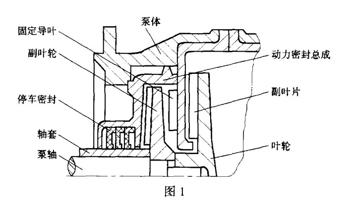 在停车时,副叶轮动力密封不起作用,泵内液体压力较小,泄漏到副叶轮的液体通过油封进行密封。