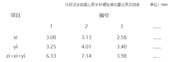 下表为分段式多级离心泵长杆螺栓伸出量记录实例。