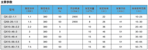 产品概述:QX型潜水泵由电机、水泵和机械密封三部分组成。电动机位于电泵上部。分单相和三相异步电动机。水泵位于电动机下面,分离心式叶轮、有下吸式及下泵中吸式两种结构形式,水泵和电动机之间采用双端面机械密封或整体式密封盒,每个固定止口密封处采用“O”形耐油橡胶密封圈作静密封。