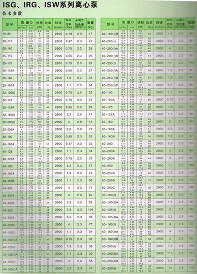 产品概述:ISG型单级立式管道离心泵、ISW型单级卧式管道离心泵,是科技人员联合国内水泵专家选用国内优秀水力模型,采用IS型离心泵之性能参数,在一般立式泵的基础上进行巧妙组合设计而成,同时根据使用介质、温度的不同,在ISG、ISW型基础上派生出适用热水、高温、腐蚀性化工泵、油泵。该系列产品具有高效节能、噪音低,性能可靠等优点。